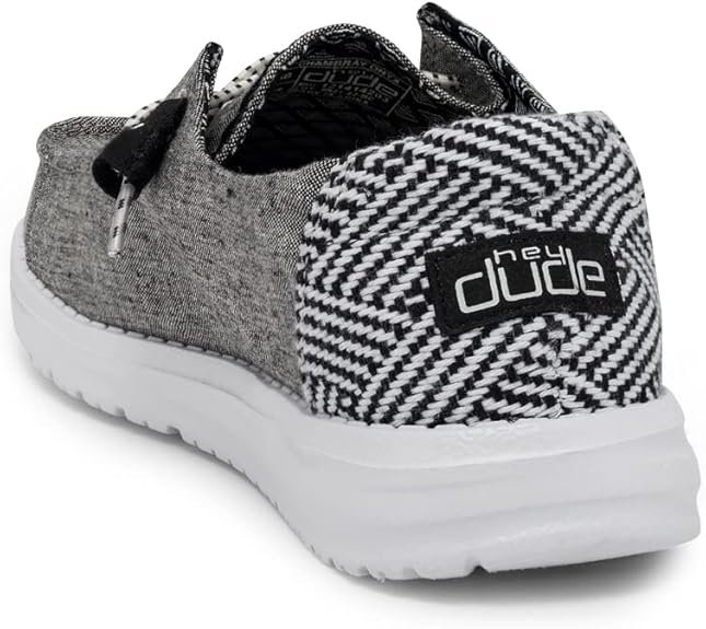 Step into sleek, effortless style with the Hey Dude Wendy Chambray Woven Loafers, designed for comfort, versatility, and a modern look. These loafers feature a trendy, rounded moc-toe and low-top silhouette, complemented by a beautifully textured upper and a contrasting heel detail that adds a fashionable touch to every step. Crafted with care, the Wendy Loafers combine a lightweight, breathable textile upper with a soft leather-and-textile lining and a removable mixed-material insole for personalized comfort. The flexible, ultralight rubber outsole provides excellent traction and freedom of movement, making them ideal for all-day wear.